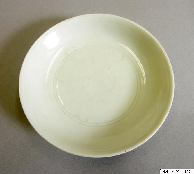 • Enligt katalogtext: Ett par vita skålar med “an hua” dekor av drakar och vatten.