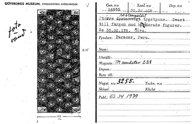 GOTEBORGS MUSEUM, ETNOGRAFISKA AVDELNINGEN • 2,1S- 1 Gen. n:o - , Sam:o.,..: :..5.0 55 , ...... , ...3 ,5„:„3. ..i&e.'„...., Dep. n:o — 44, t,b4pi-4- 7-töu9 ..tyltentrg,:t tygstyck2.. Sva t till färgen gle.d. Aderad.e_figurer Se 35,äa.178 Cnva. Fyndort: Para.cas .P.eru. Stam • .Utställt. Magasin: 2,2/g Depon. • Byte till: Nega; n:o ••112 Publ.: ‘e-S. s3 /n-9' Teckn.. n:o Skiopt:, „ KlicU . for- [ocr]