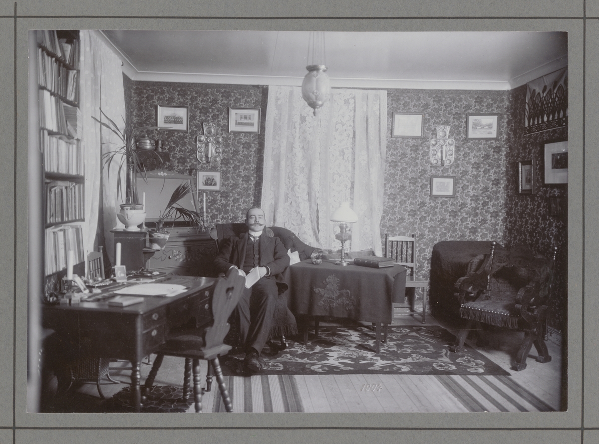 Gustaf Löfgren, officer vid Västgöta-Dals och Hallands regemente, fotograferad i sitt hem i Tyft, Hoga på Tjörn.
