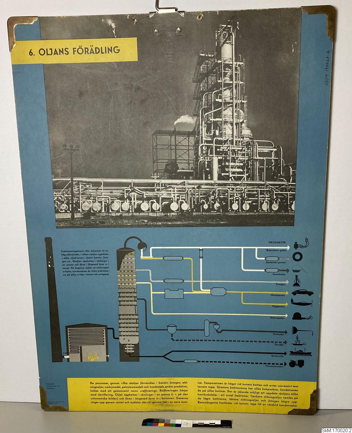 • Skolplansch, ena sidan av dubbelsidig plansch. Ingår i planschserie utgiven av Svenska Esso, nr 6 "Oljans förädling".