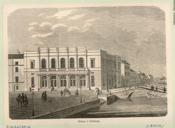 Börsen vid Gustav Adolfs torg som också visar Östra Hamngatan mot Lilla Bommen I bildens underkant står Börsen i Göteborg