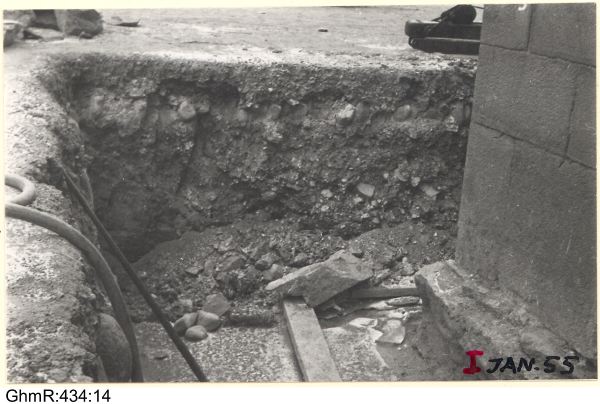 • Göteborgs domkyrka. Grundförstärkning. Långhusets sydvästra hörn. Fotografiet är taget mot väster.