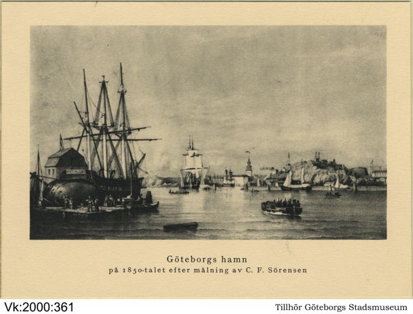 Göteborgs hamn på 1850-talet efter målning av C. F. Sörensen [tryck på vykortet]
