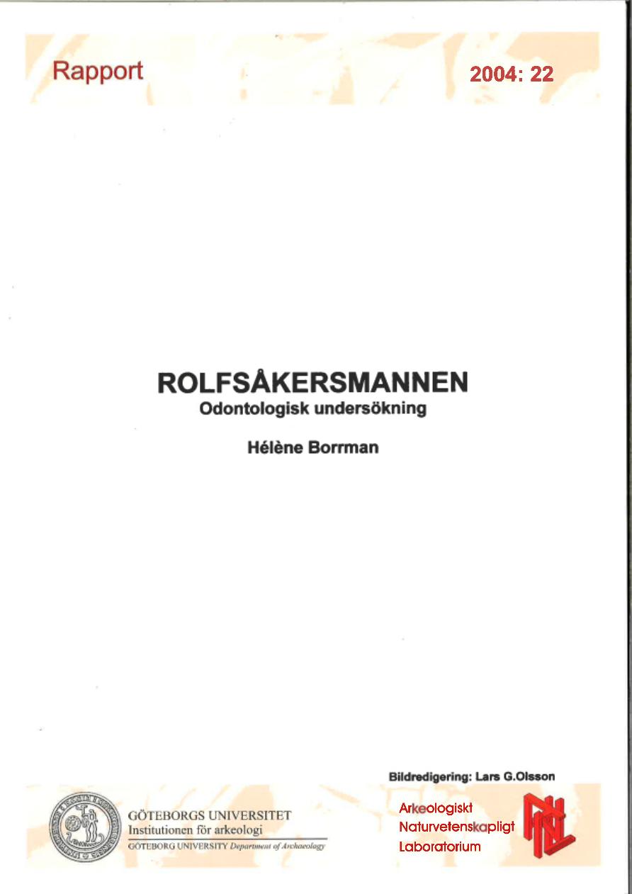 odontologisk undersökning, arkeologisk rapport, ämnesordnad handling, odontologisk rapport, Rolfsåkersmannen odontologisk undersökning