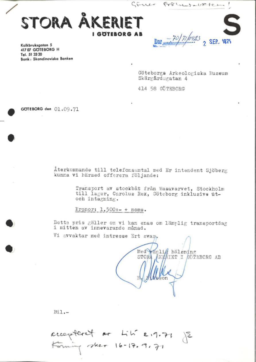 ämnesordnad handling, arkivhandlingar, offert