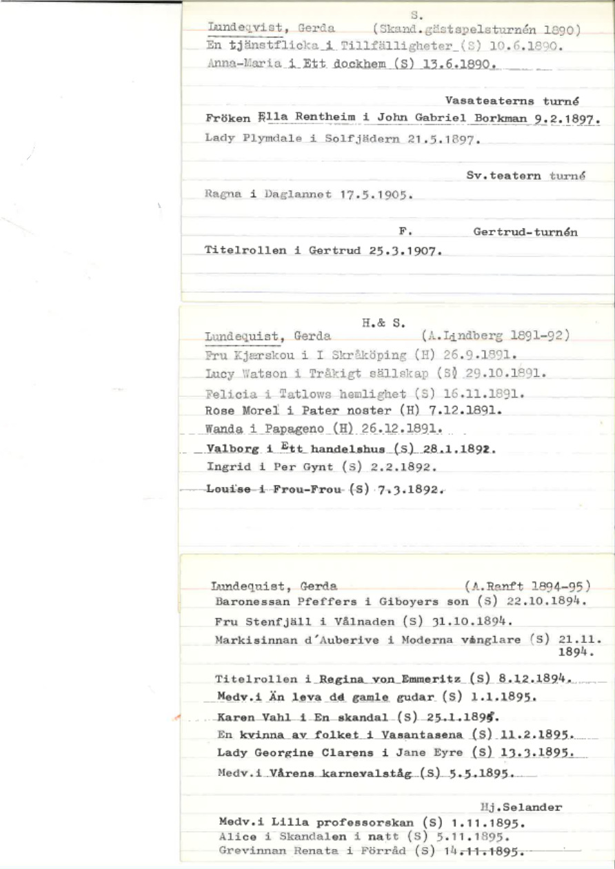 arkivalier, rollförteckning, Gerda Lundequist-Dahlström