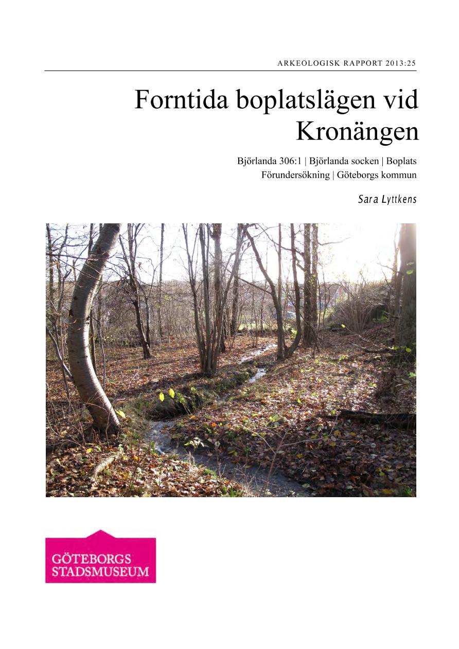 rapport, arkeologisk rapport, Björlanda 306:1, Björlanda socken, Boplats, Arkeologisk rapport 2013:25, Förundersökning, Göteborgs kommun, Forntida boplatslägen vid Kronängen