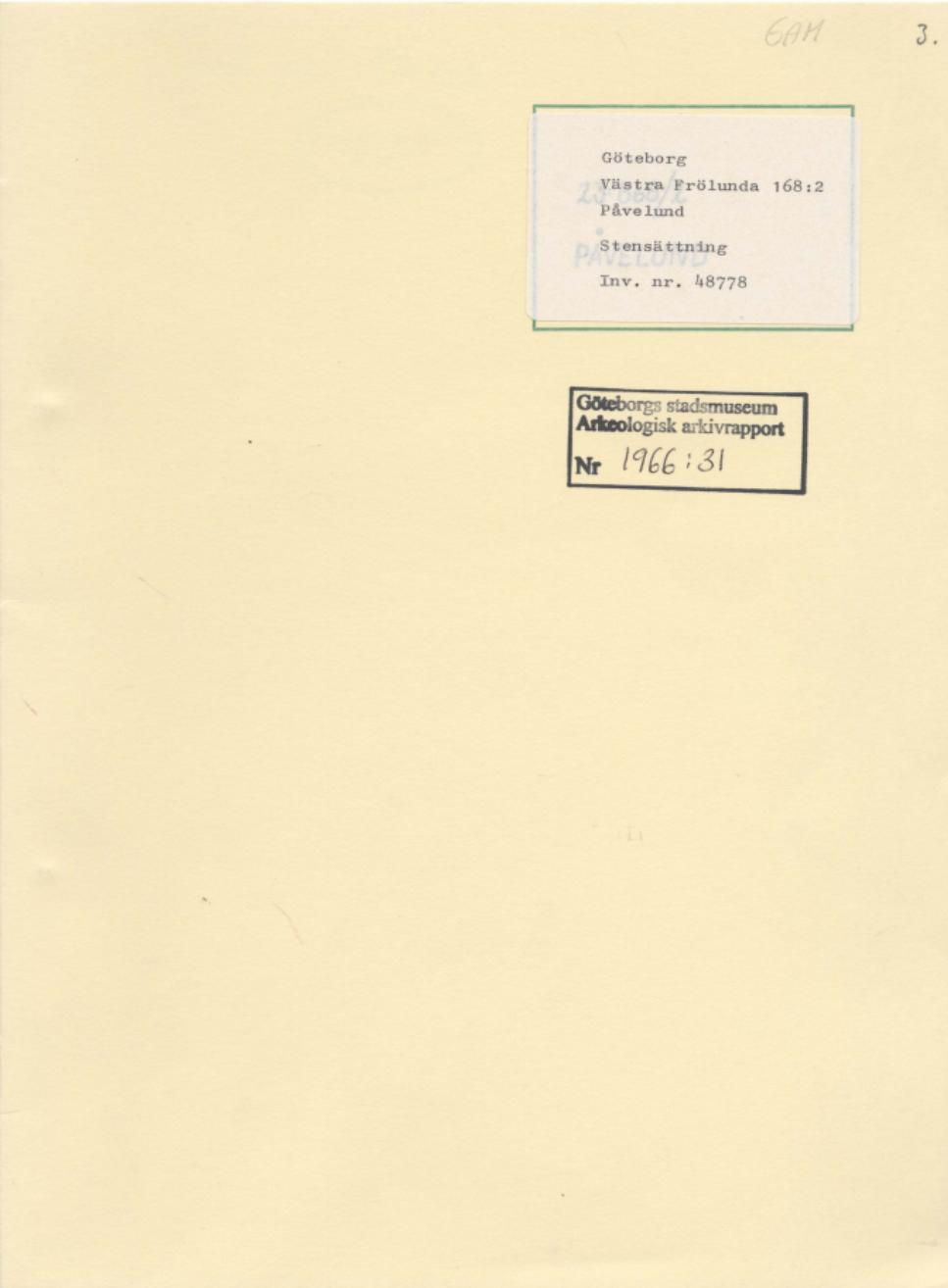 arkeologisk rapport, arkeologisk arkivrapport, rapport, Arkeologisk rapport, fornminnesinventeringens nummer 23:868/2 inom Göteborgs stad, Rapport över undersökning av