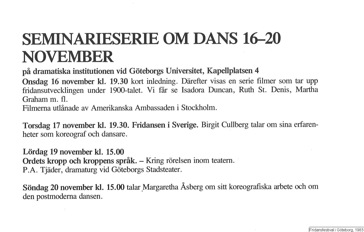 Fridansfestival i Göteborg, 1983, Fridansfestival i Göteborg