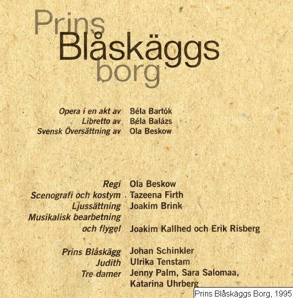 Tillverkades 1995-09-15 - i GöteborgsOperan, lilla scenen.