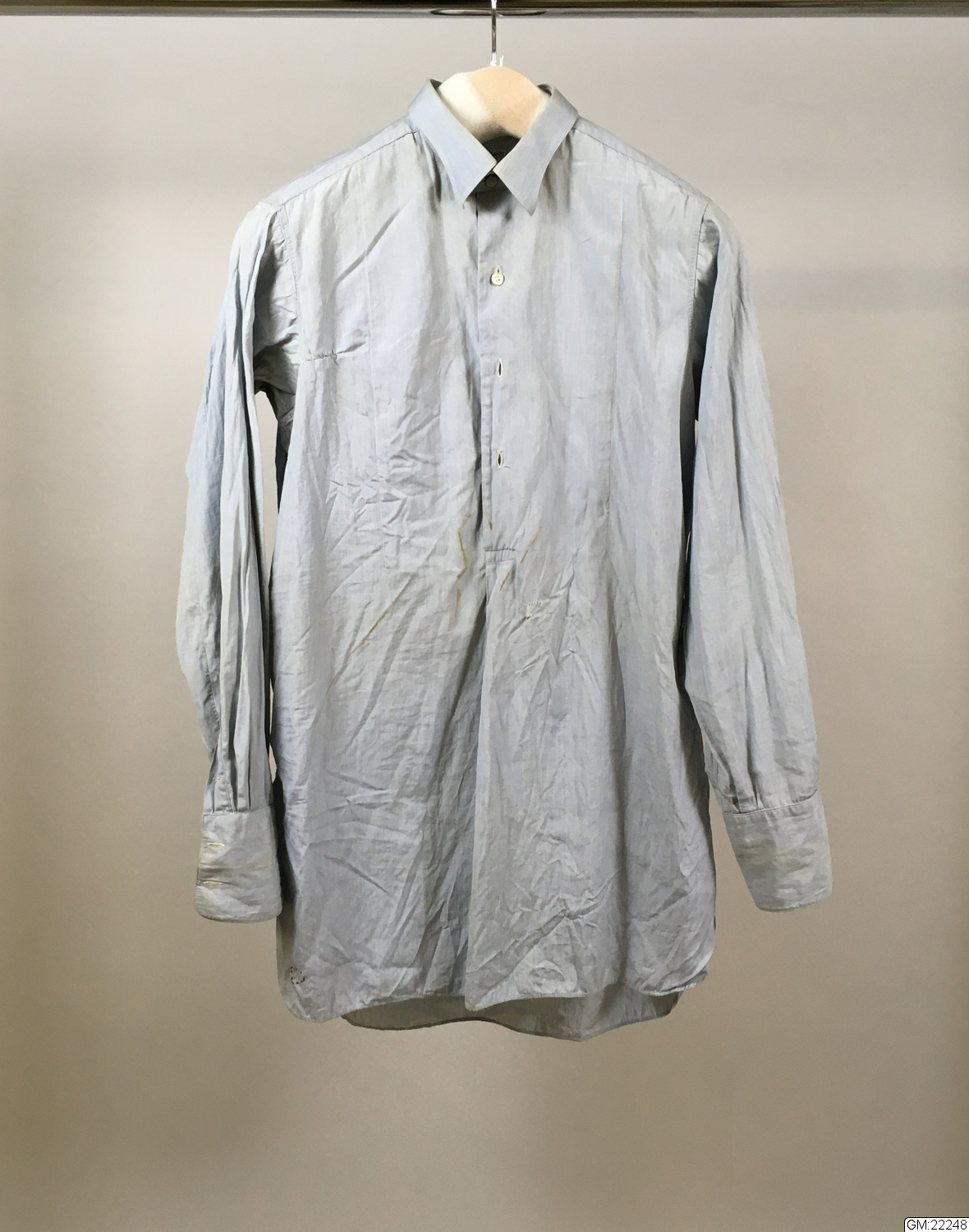 • Skjorta med lös krage som är fäst till skjortan med skjortknapp.