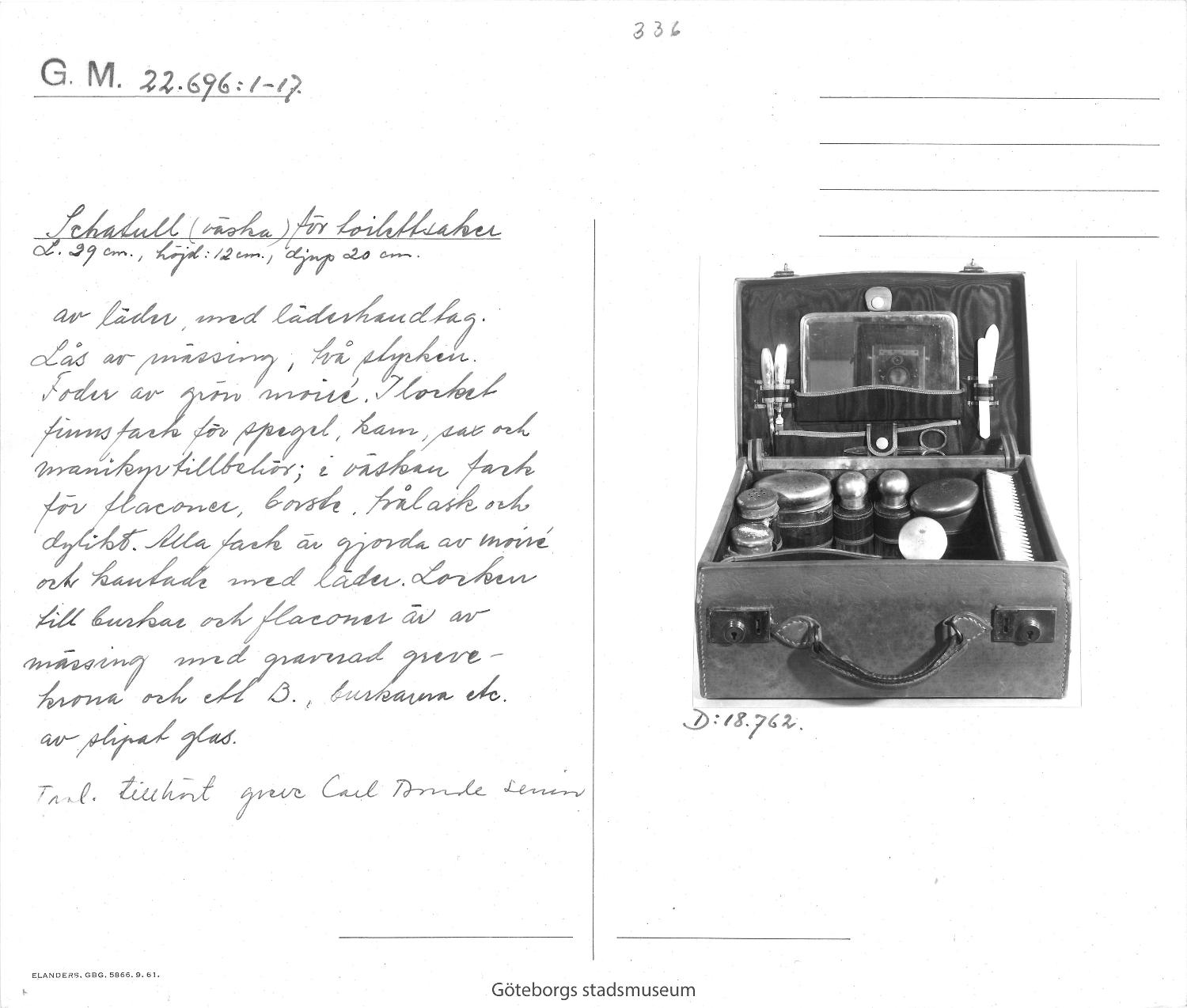 • Gåva av grevinnan Blanche Bondes sterbhus.