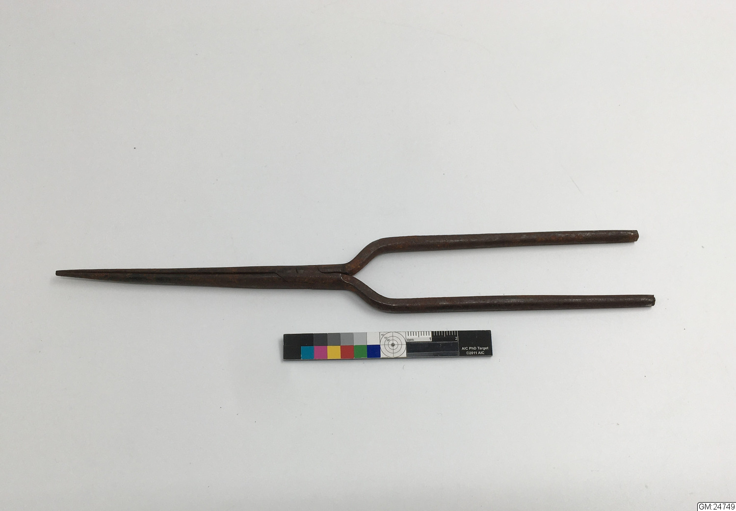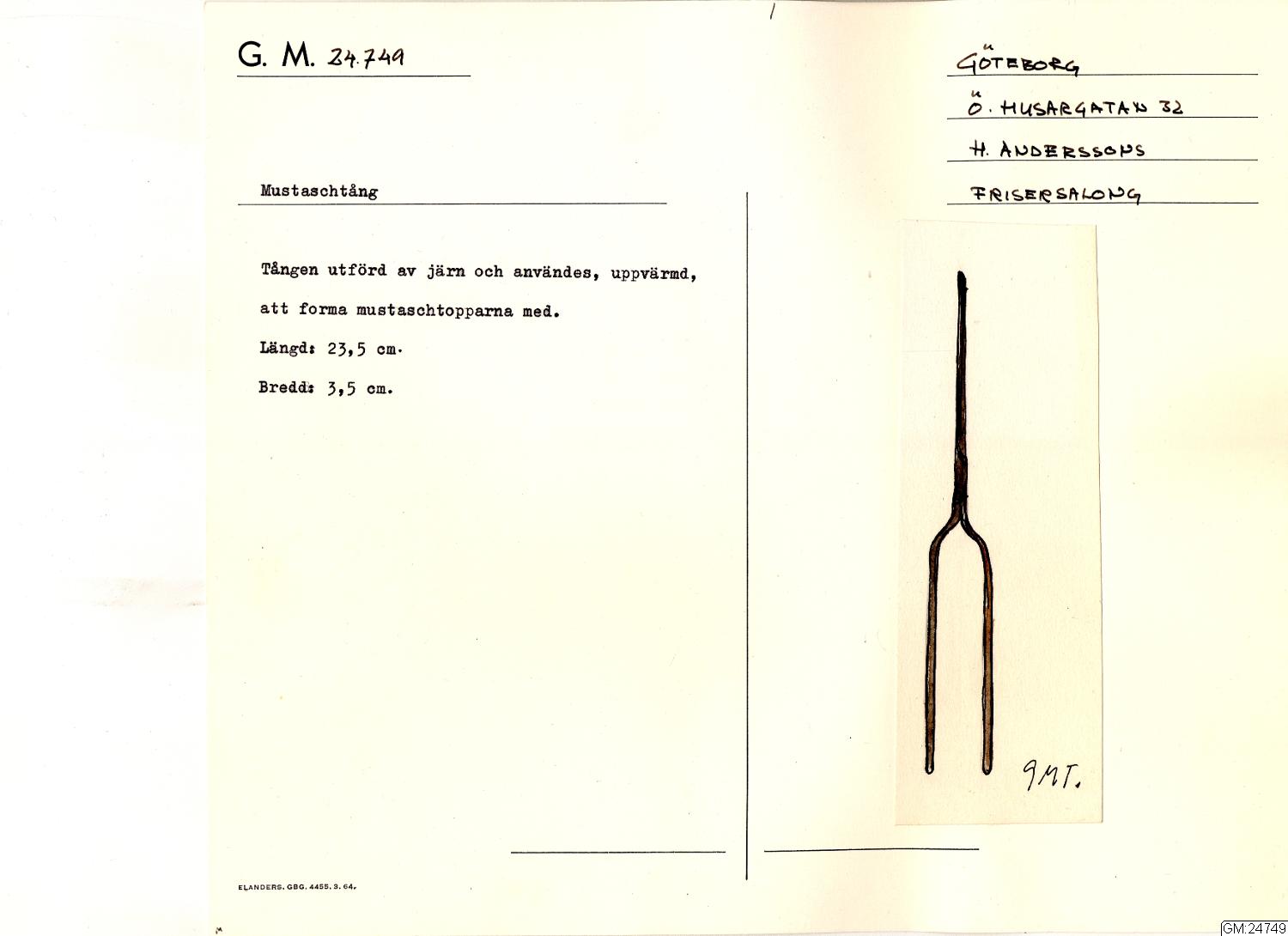 • Mustaschtång i järn. Användes uppvärmd att forma mustaschtopparna med.