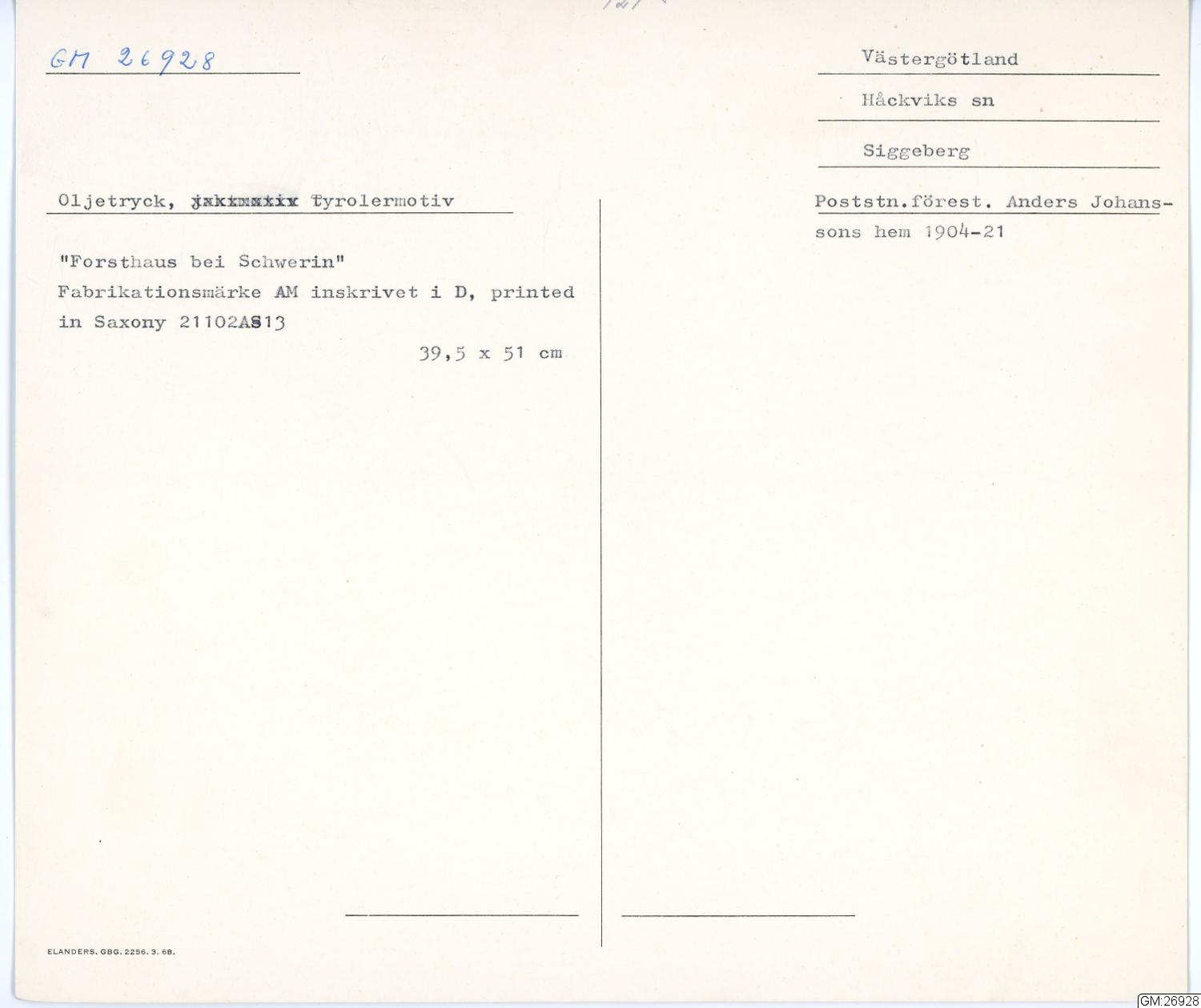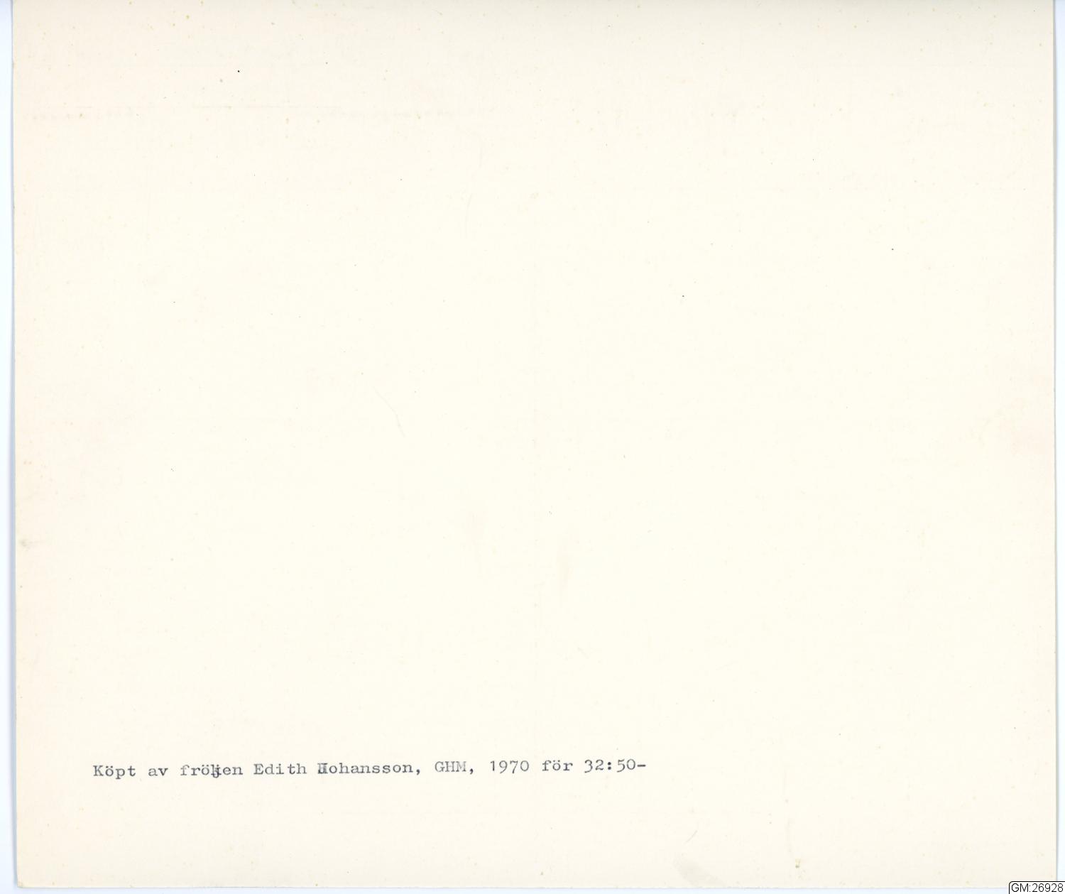 • Förvärvad 1969 i Sverige av Johansson, Edith, 1905-1991.