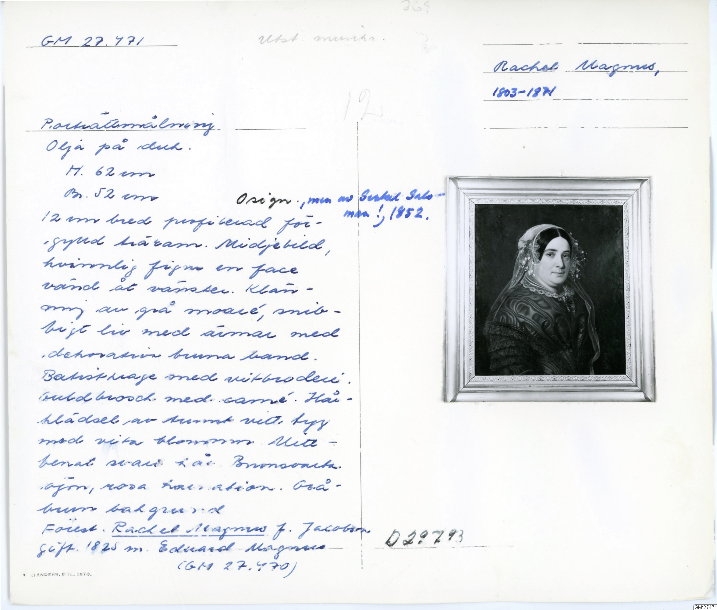 • Porträtt av Rachel Magnus. Oljemålning av Geskel Saloman 1852.