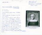 Oljemålning, porträtt föreställande Margareta Huitfeldt (1608-1683), klädd i svart dräkt med vit fyrkantig krage och svartvit hätta, möjligen änkedräkt. Kvinnoporträtt, en face, bröstbild, polykrom, p...
