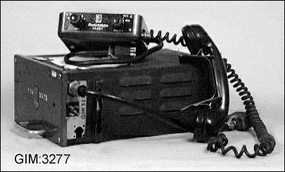 • Kommunikationsradio troligen Taxiradio, 4 kanaler, 20 Rör, grått plåtchassi, manöverenhet CAB. Plåtkapslat, inbyggd högtalare, omkopplare i bakelit inkl spiralsladd, inkopplad telefonlur, upphängnings konsol