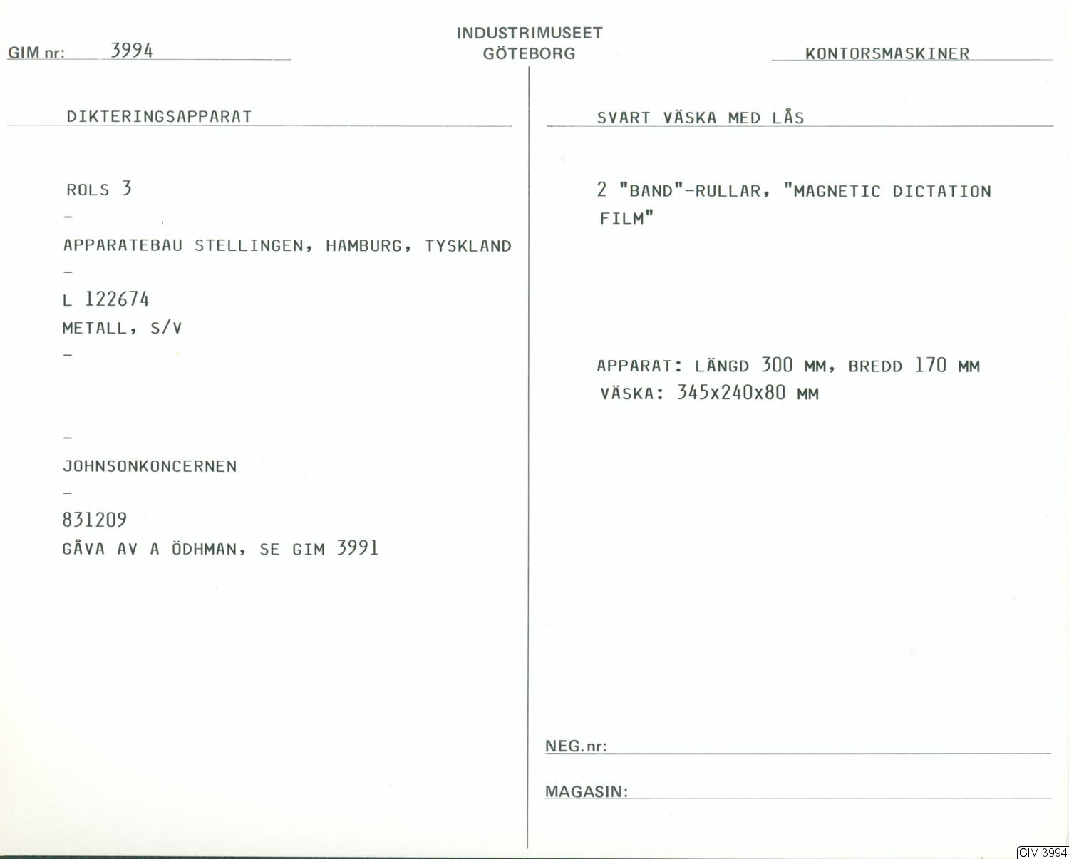 • Förvärvad 1983-12-09 av Ödhman, Arvid, Johnsonkoncernen.