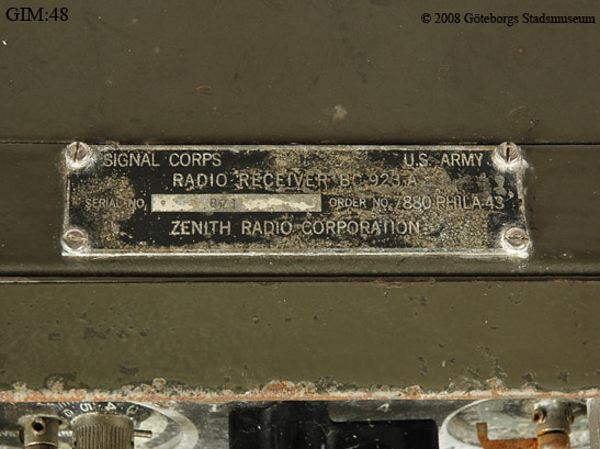 Militär radiomottagare. Använd av den Amerikanska armén under andra världskriget och avsedd för bruk i fordon. Rör- bestyckad. Frekvens okänd. Militärgrått plåtchassi 27-40Mhz. Torde fungera, fyra kanaler med separata avstämnings kristaller. Rundradiomottagare. Motagaren BC-923-A användes tillsammans med Sändare BC-924-A i ett set kallat för SCR-808-A eller SCR-828-A.