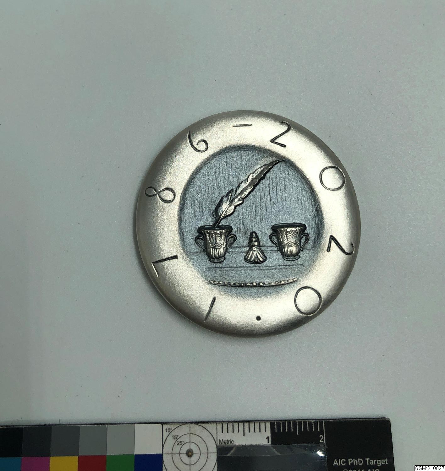 Akademiens årliga minnespenning, år 2020. Svenska Akademiens beskriver årets penning på följande sätt: "Årets minnespenning är ägnad ledamöterna på stol 12 i Akademien. Minnestolkningen som har titeln Utsikt från stol 12 och är författad av stolens nuvarande innehavare Per Wästberg, porträtterar på ett personligt och inträngande sätt de tolv företrädarna och utgör samtidigt en hyllning till Svenska Akademien som fri intitution och kulturfrämjande gemenskap."Stäng