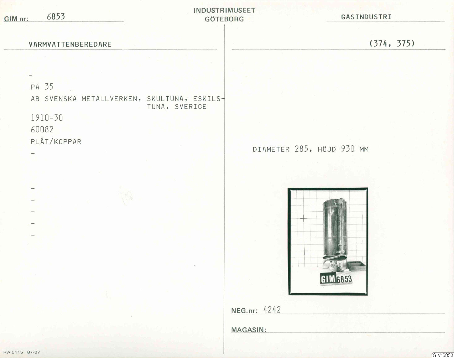 • Varmvattenberedare som är märkt 60082. Den är ärgad.