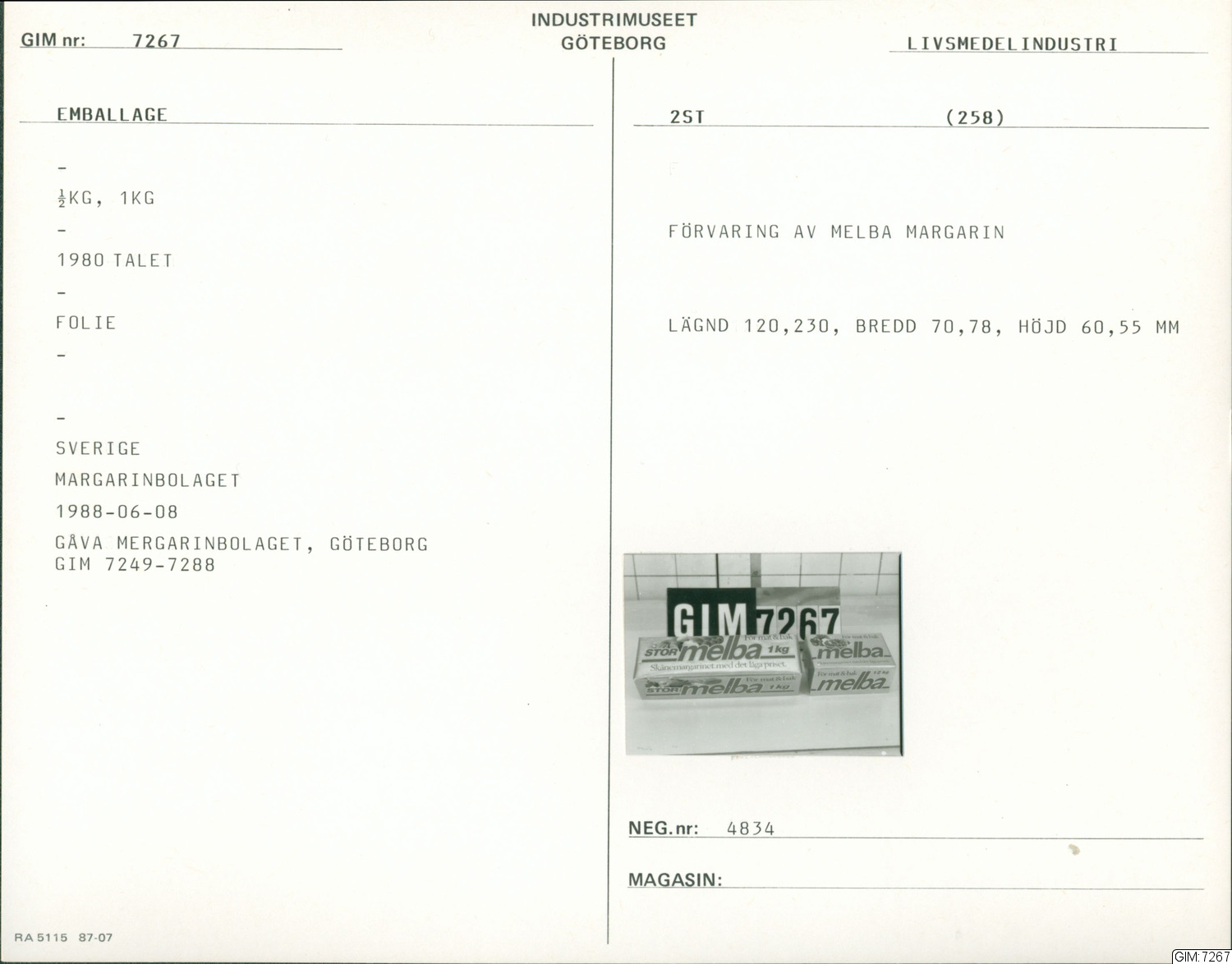 • Förvaring av Melba margarin