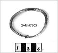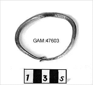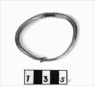 Armring av silver,diam 6,5-7,8 cm av fyrkantig, 0,45 cm tjock mot ändarna avsmalnande ten, ändarna som varit lindade om varandra,avbruten.Vikt32,5 g. Lidskatten