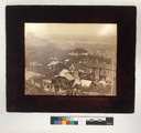 • Fotosamling, 24 svartvita fotografier med ram i rödsammet.