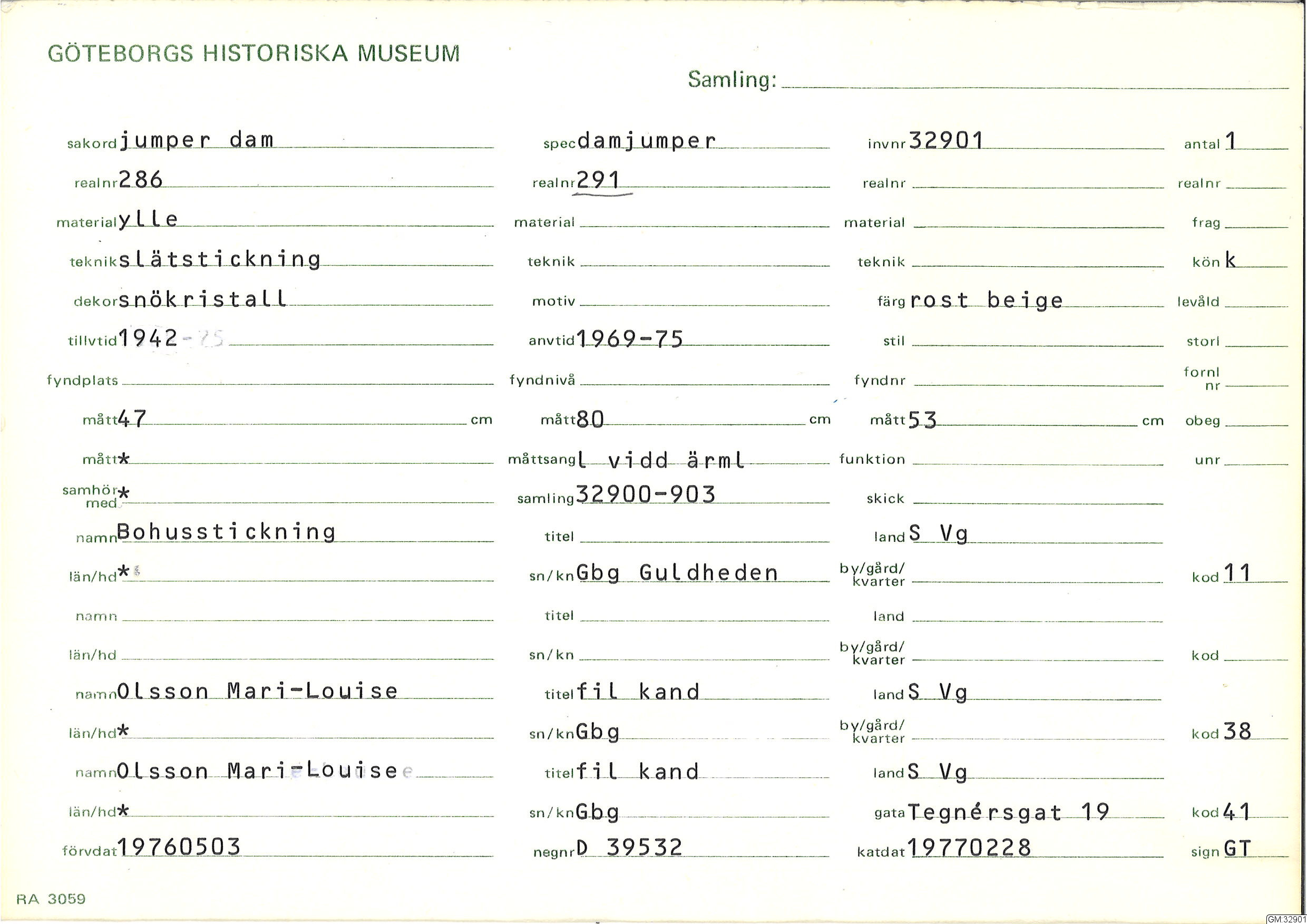 Förvärvad 1976-05-03 i Göteborg, Sverige av Olsson, Marie-Louise.
