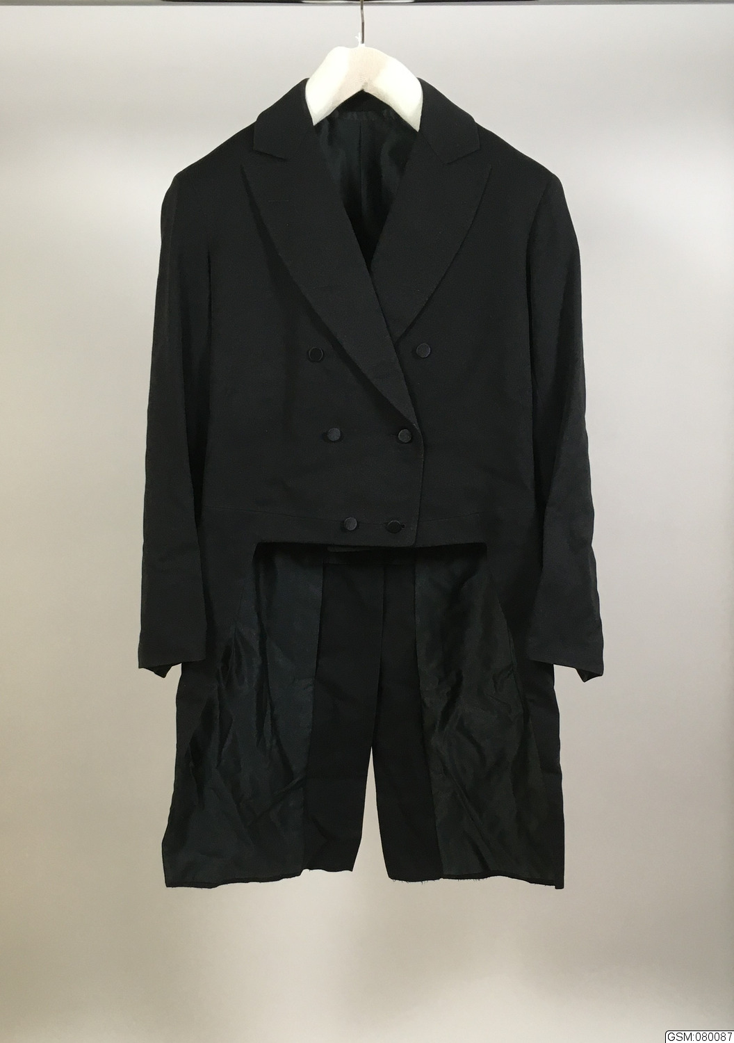 • Frackrock använd vid vigseln mellan Johan A. Westling och Matilda Carlsson fjärde januari 1882, fracken är av svart kläde och har knappar klädda med svart satäng. Foder av svart satäng utom i ärmarna som har ett ljust randigt foder.