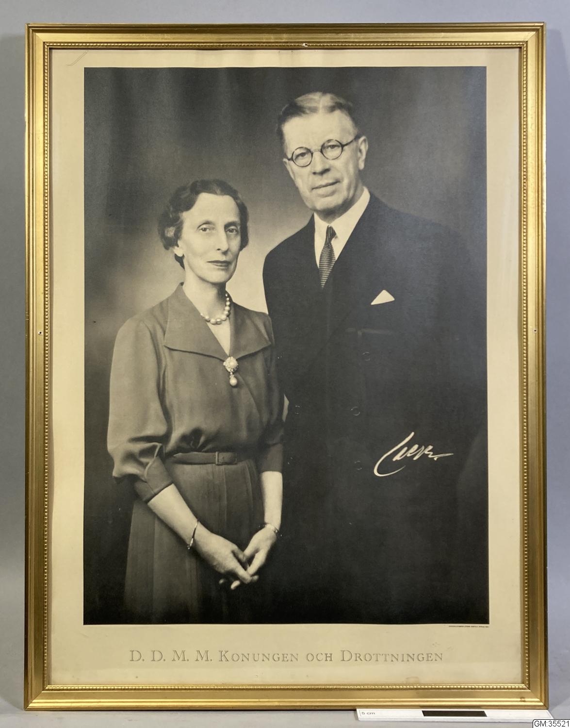 • Litografiskt tryck efter porträttfotografi av kungaparet. Fotografens signatur i motivet på verkets högra sida.
