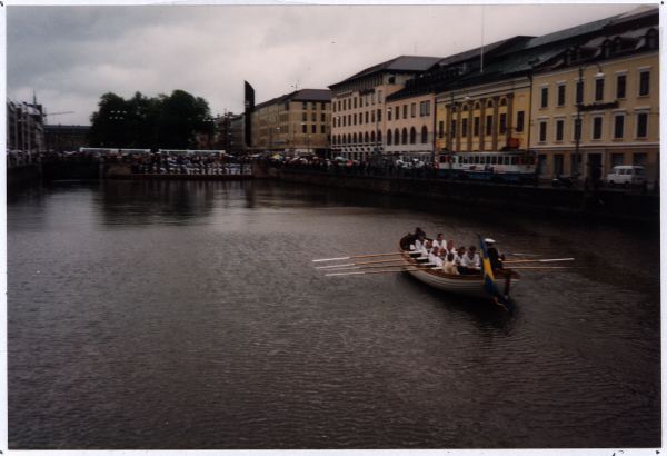 Invigning av Lejontrappan vid Brunnsparken 4/6 1991. (Fontänbron)."I roddbåten Gustaf II Adolf och Maria af Brandenburg".
