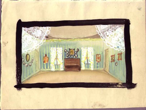 interiör, scenografi, bilder, dekorationsskiss, Hans nåds testamente