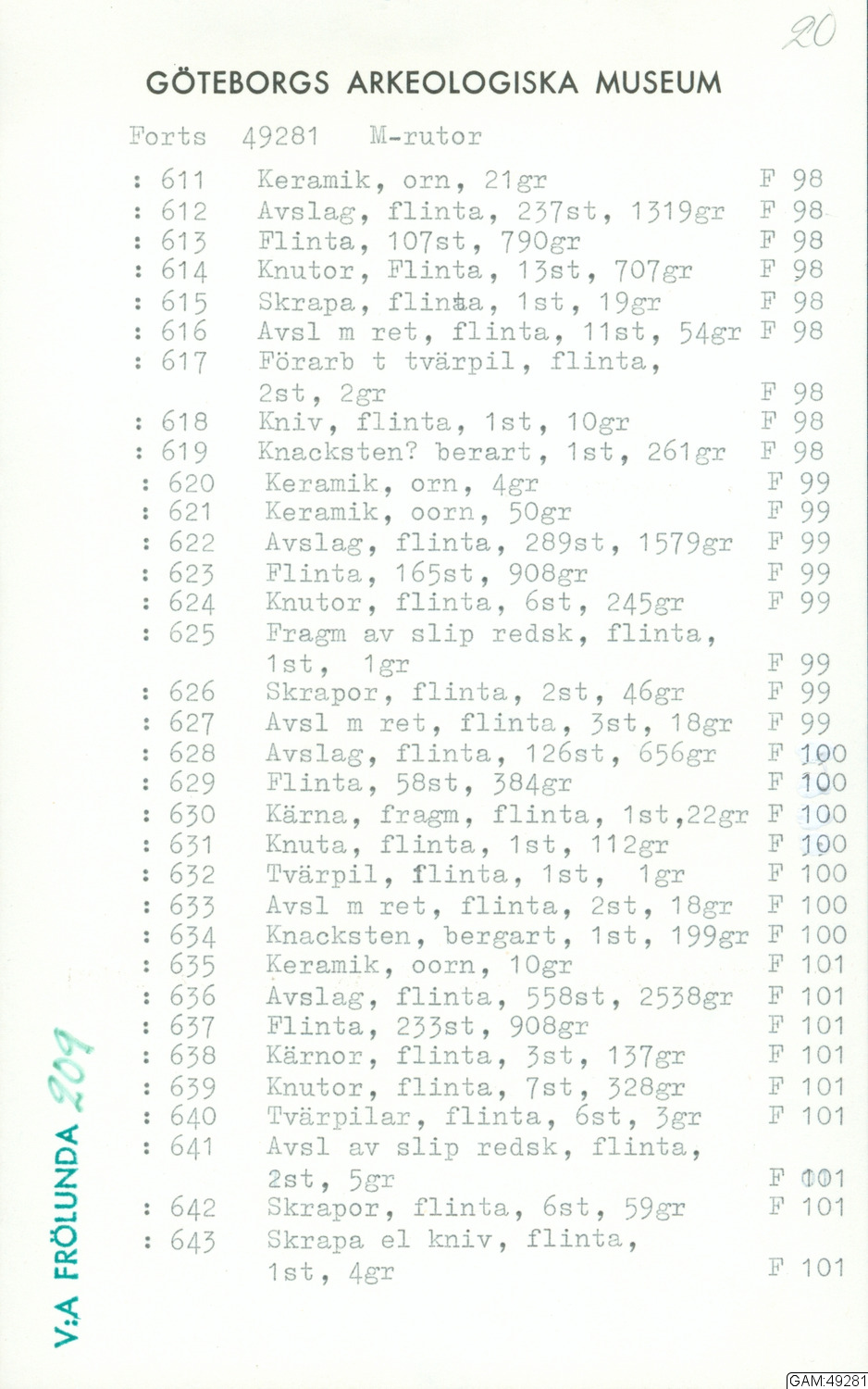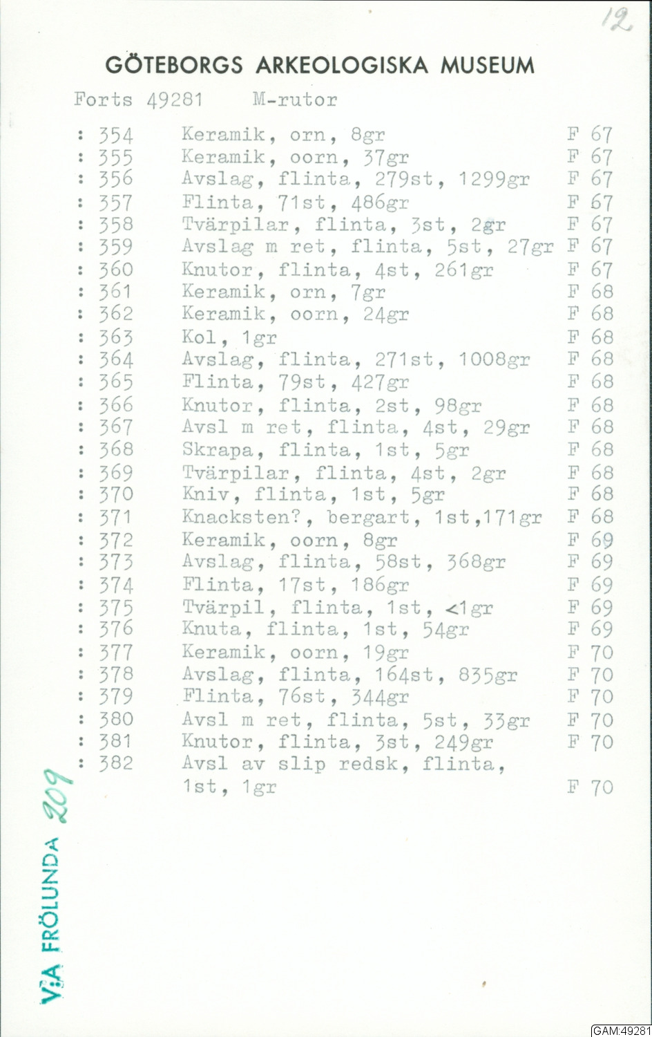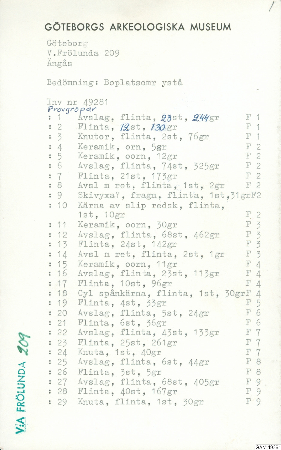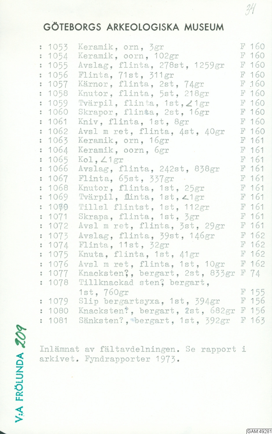 Hittad 1972-08-08 - 1972-08-16 i Göteborg, Västra Frölunda, Västergötland, Sverige, Europa av Andersson, Stina, arkeolog.