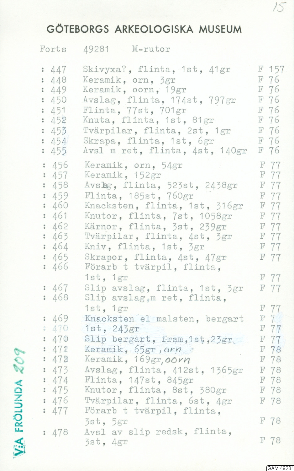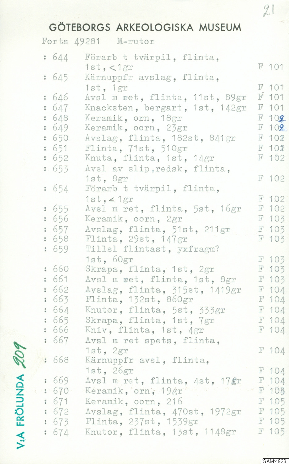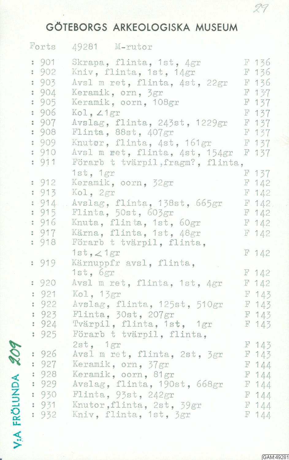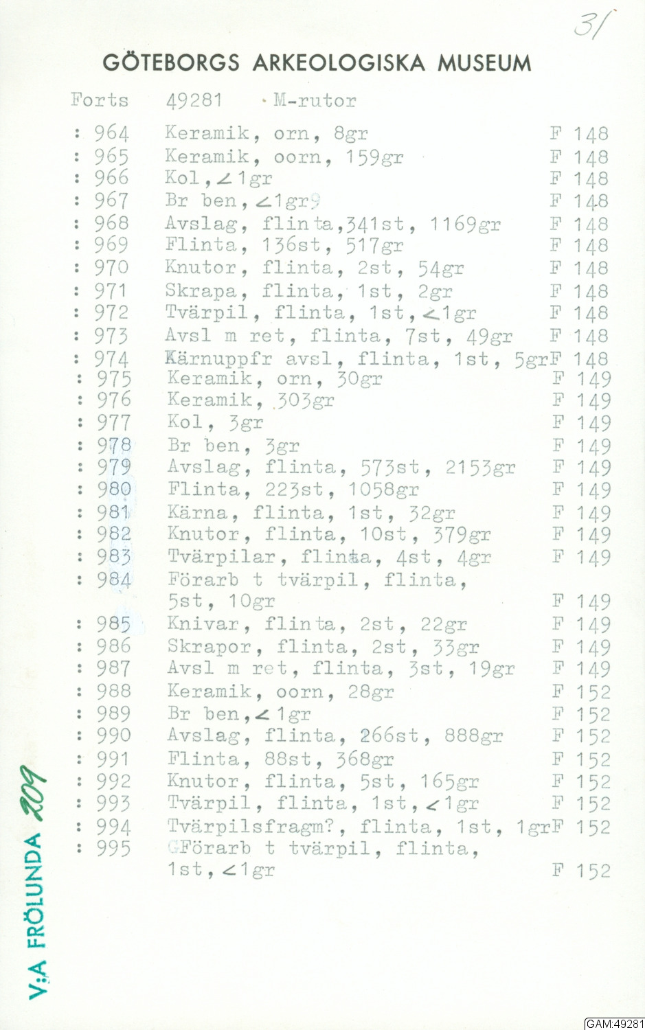 Hittad 1972-08-08 - 1972-08-16 i Göteborg, Västra Frölunda, Västergötland, Sverige, Europa av Andersson, Stina, arkeolog.