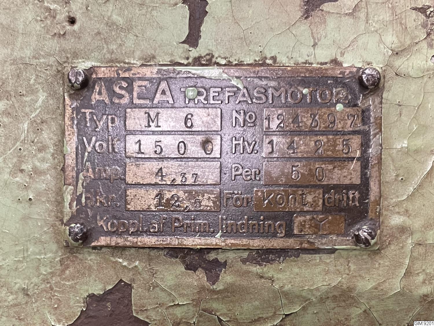 • Motor, Allmänna Svenska Elektriska Aktiebolaget, Vesterås. ASEA trefasmotor för kontinuerligt drift.