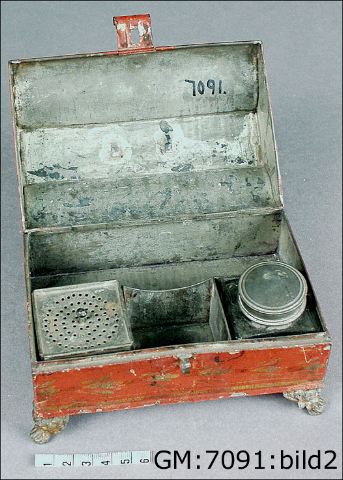 skrivschatullBleckplåt och glas, 1700-talets slut.GM:7091