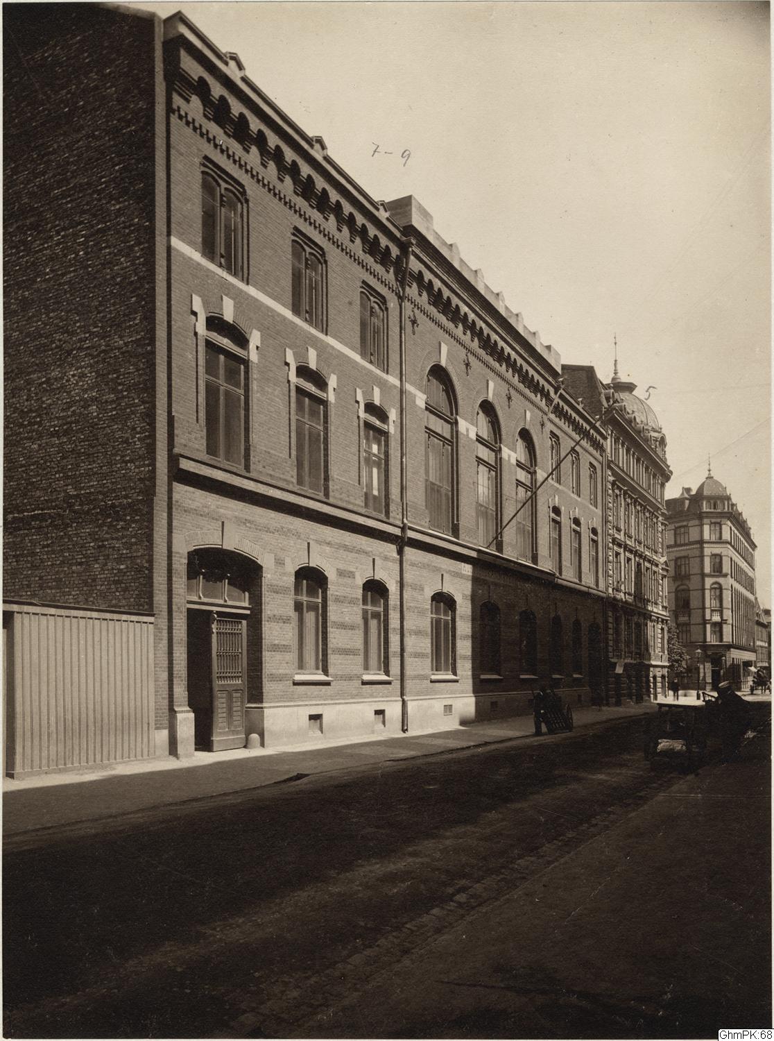 • Sträckningsbild längs Tredje Långgatan med Auktionskammaren på nr 7-9. Blick mot öster.