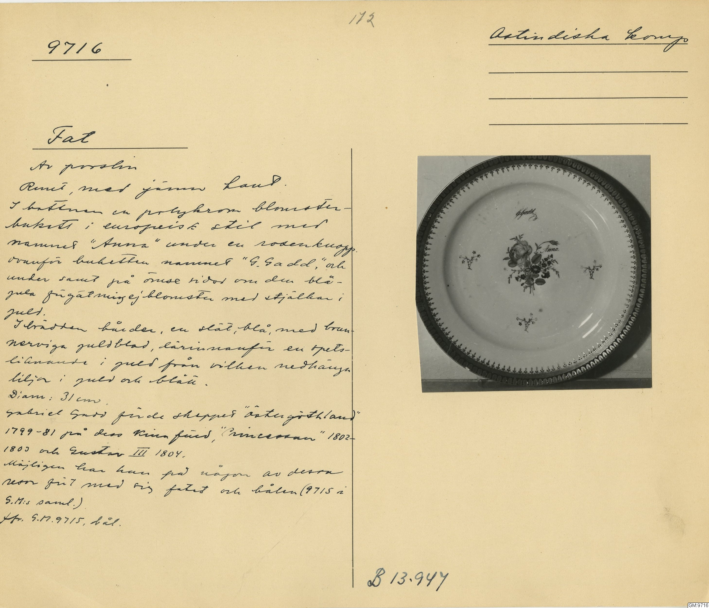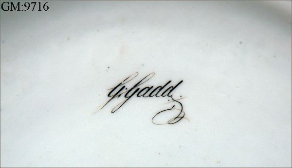 Kommentar: Texten är fel för att den hänvisar till pappa Gadd, dvs Anders medan skålen har ett G påskrivet som syftar till sonen Gabriel Gadd.
