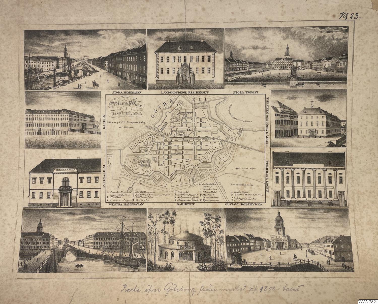 • Plan av vyer av Göteborg, lit. o. tr. på N.J.Gumperts förlag.