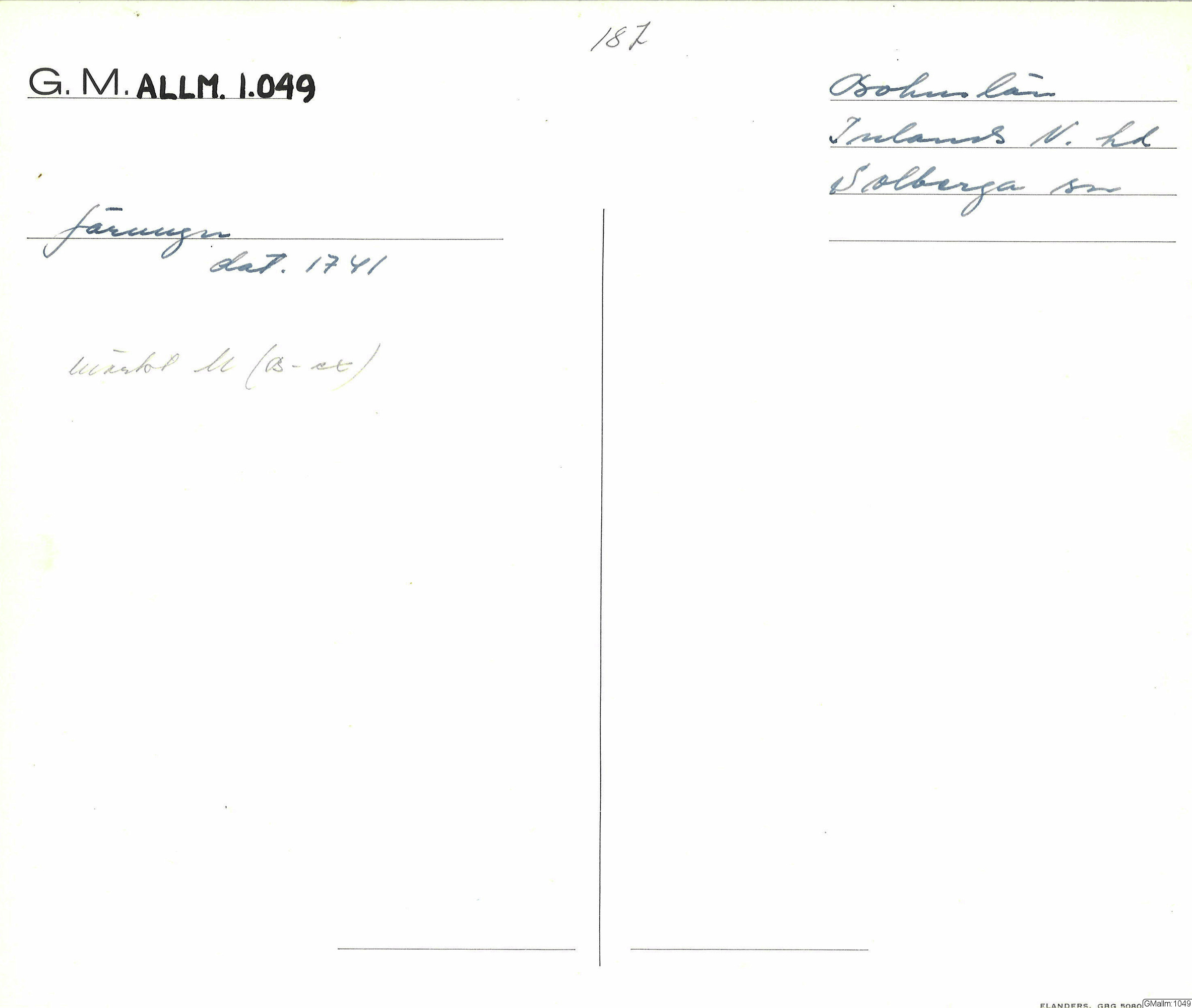 Plats <presPlaceLabel> Sverige [Trolig], Bohuslän [trol.], Solberga, Bohuslän [Trolig], Inlands Nordre [Trolig]