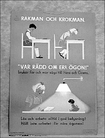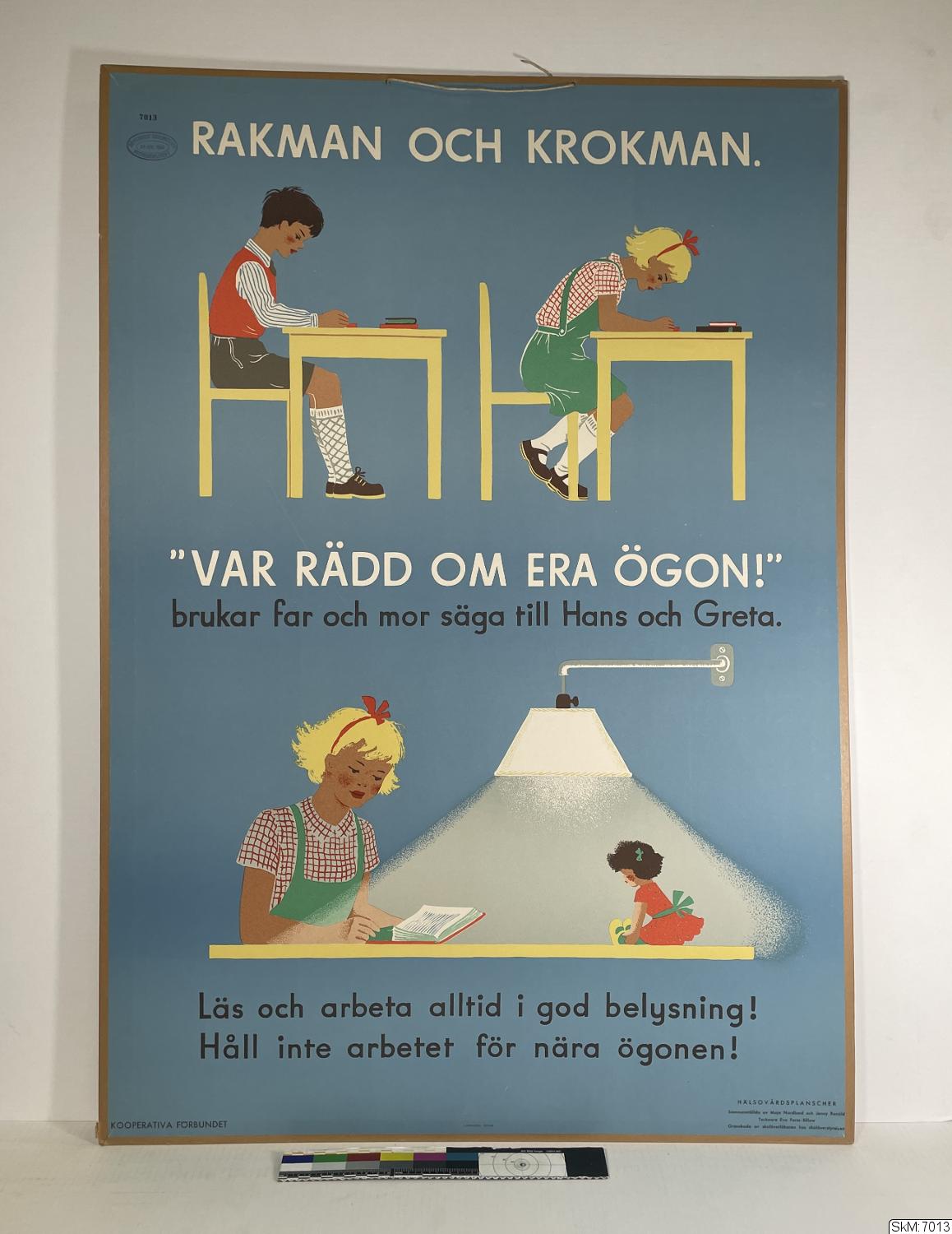 Motiv:"Rakman och Krokman", polykrom bild. Serie: Hälsovårdsplanscher "Sammanställda av Maja Nordlund och Jenny Ronáld". Tecknare Eva Forss-Billow