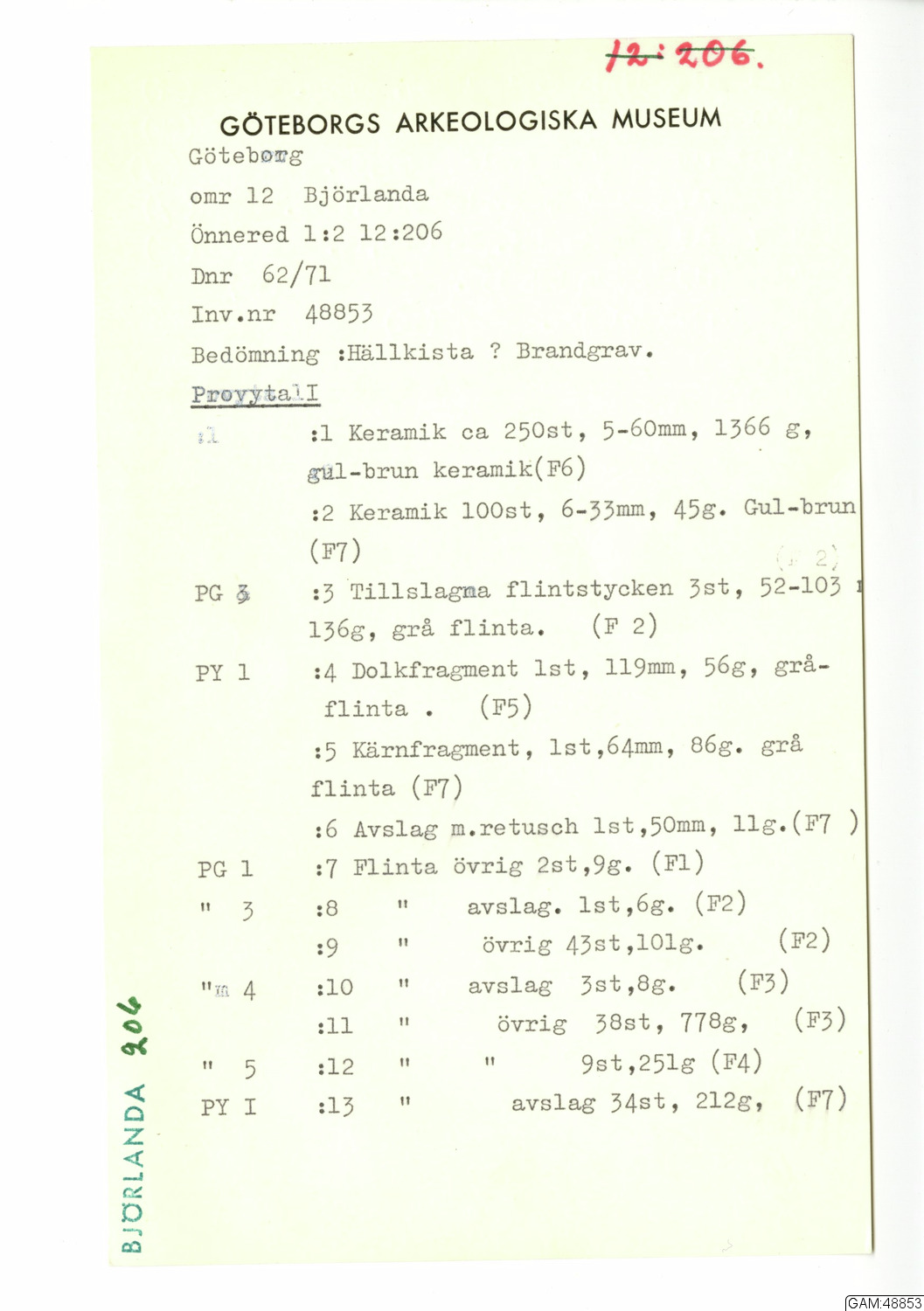 • Hittad 1969-08-07 - 1969-08-15 i Göteborg, Björlanda, Bohuslän, Sverige, Europa av Andersson, Stina, arkeolog.