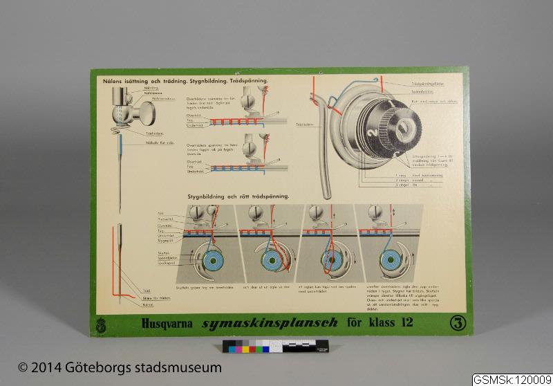 • En av fyra planscher som givaren fått (trol) i samband med en 1-veckas kurs för lärare på Husqvarna-fabriken. Kursen var en intensivutbildning i Husqvarna symaskiner.