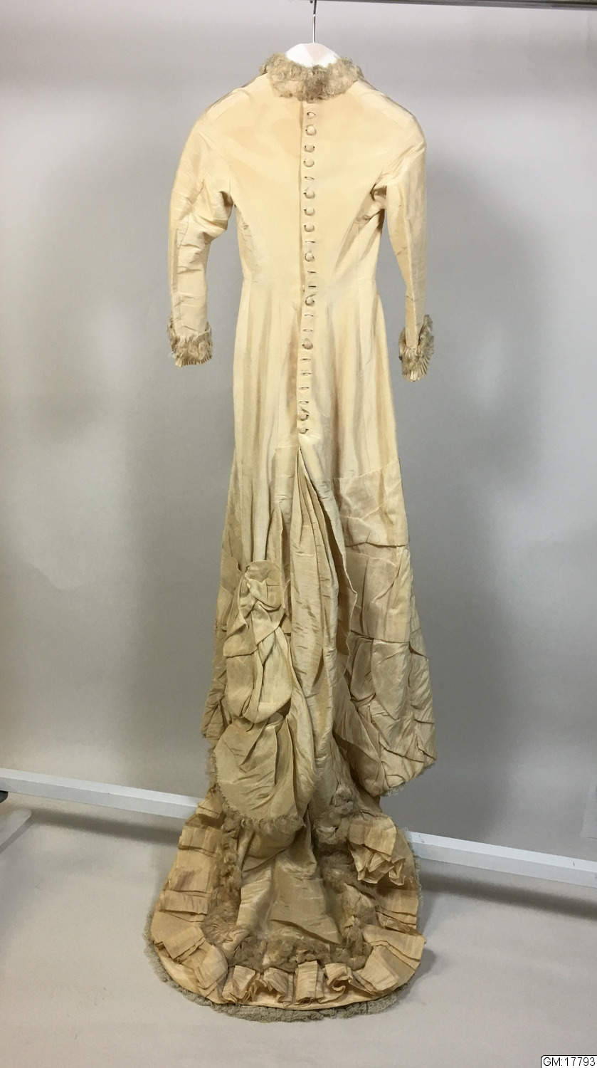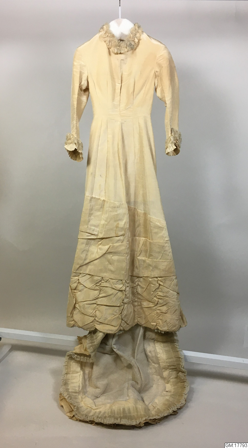 • Brudklänning i gräddvit taft.