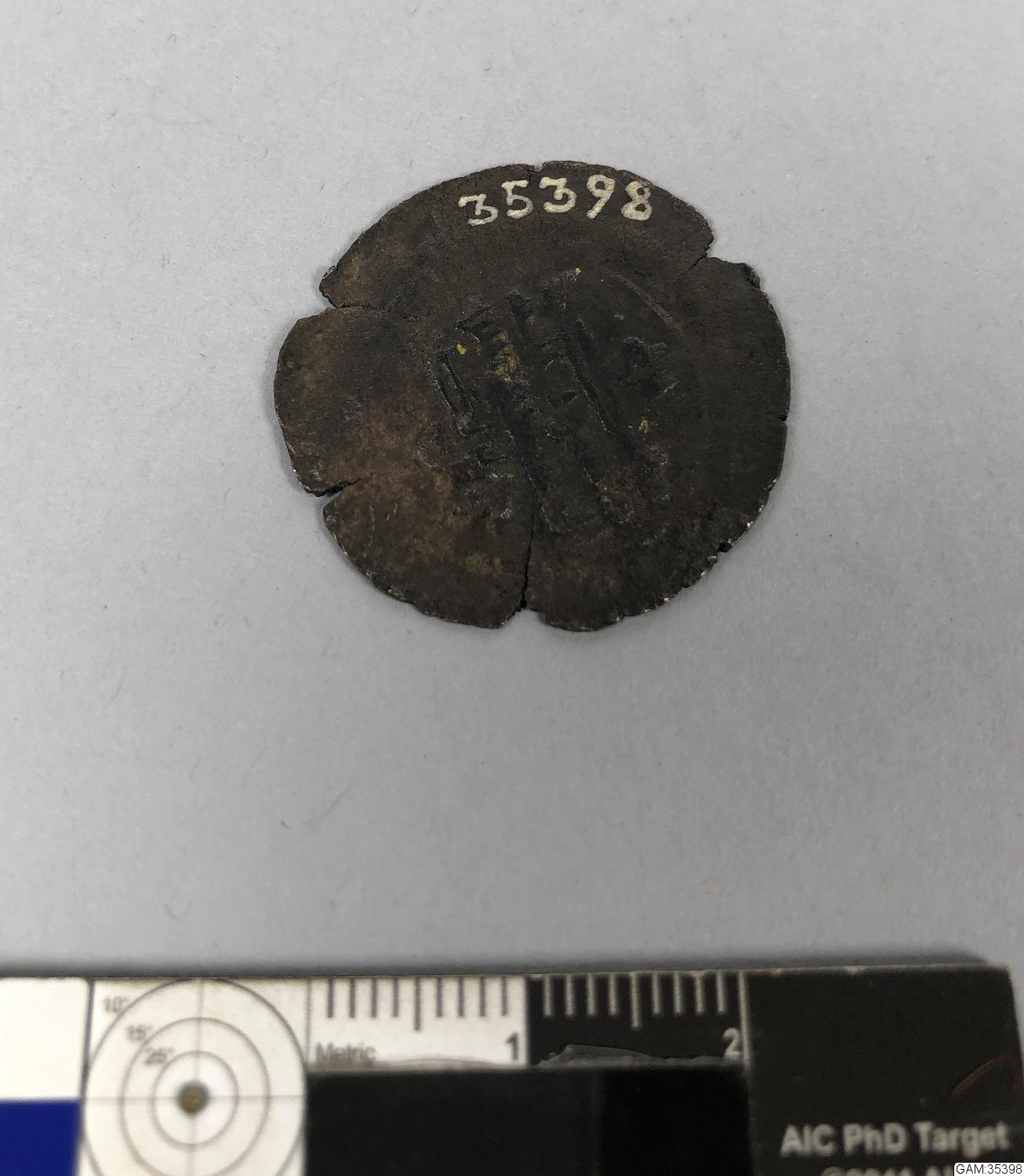 • Mynt av silver kufiskt, falskt, halfr från samarkande år 950