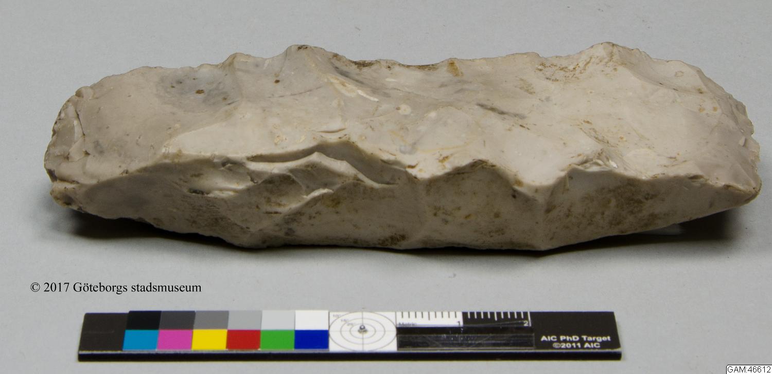 F av eleven Knut Berg Ellesbo den 2 mars på kvällen ca 250 m V om Svenstorps skolhus, 0,5 km NV om Ellesbo gård vid östra kanten av svarte mosse. Yxan stack upp en cm ur marken.