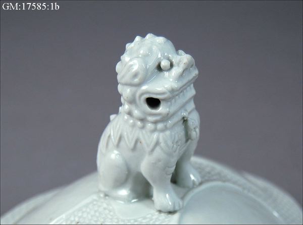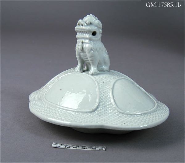 • Lock till urna, ostindiskt porslin. Prydnad i form av phi-phi-hund.