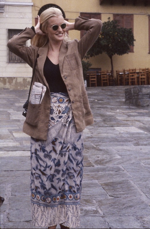 Bilden ingår i en serie tagna omkring 1990 i Grekland (7075-2008 --7099-2008). Ena modellen som var med heter Terese Strandell (långt blont hår).