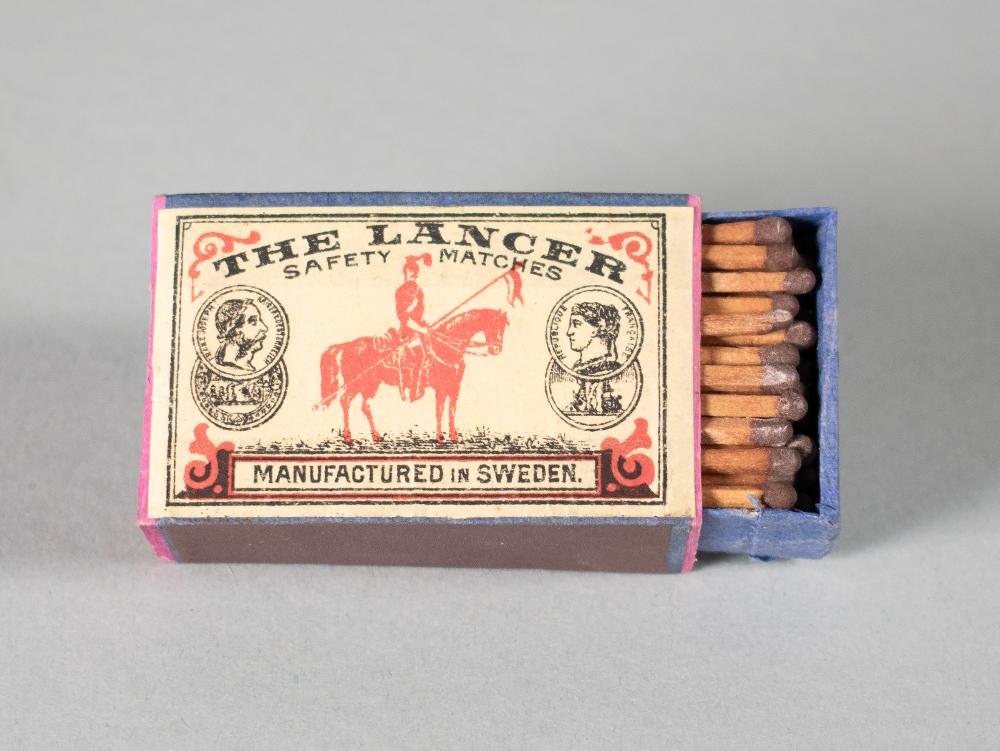 • The lancer safety matches, manufactured in Sweden. [på askens ovansida]